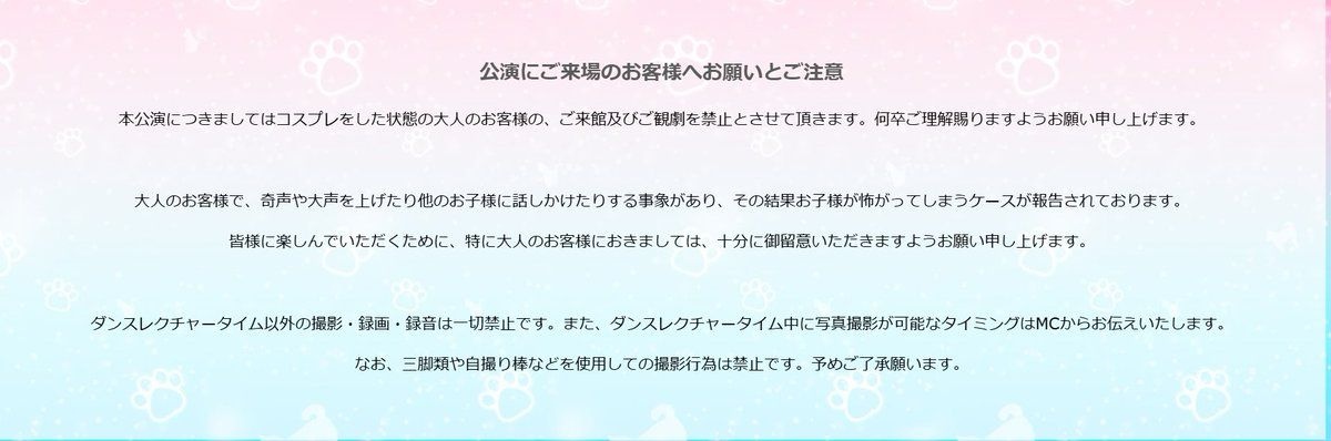 > 大人のお客様で、奇声や大声を上げたり他のお子様に話しかけたりする事象があり、その結果お子様が怖がってしまうケースが報告されており