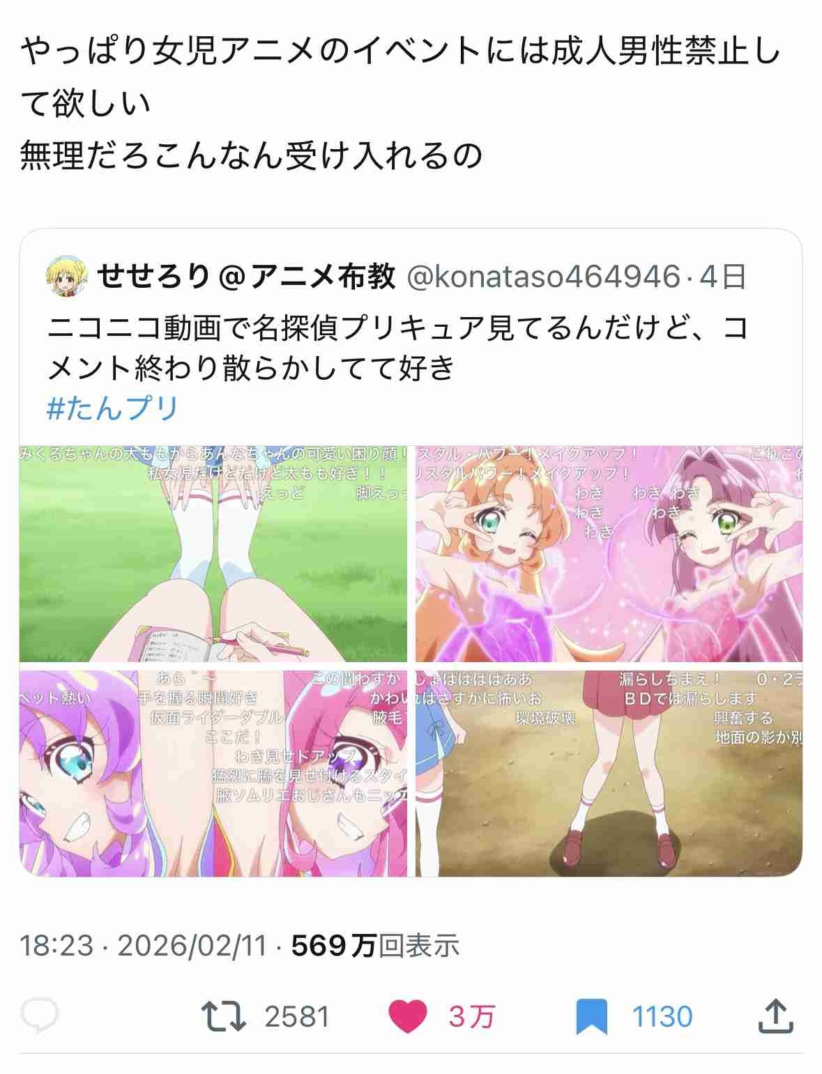 X民女性「やっぱり女児アニメのイベントには成人男性禁止して欲しい」3万いいねwww
