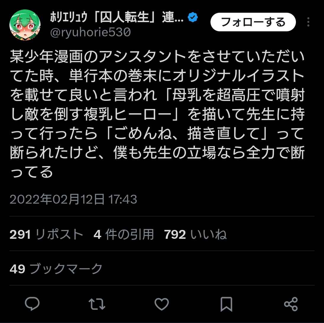 ヒロアカのアシスタント「好きなヒーロー1人出していいって言われたから母乳を噴射して倒すヒーローを考案したらNG食らった」