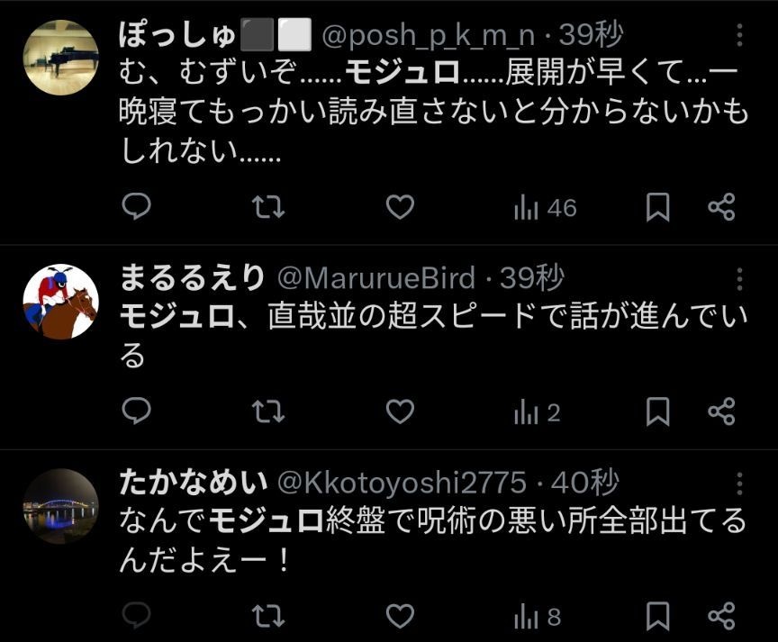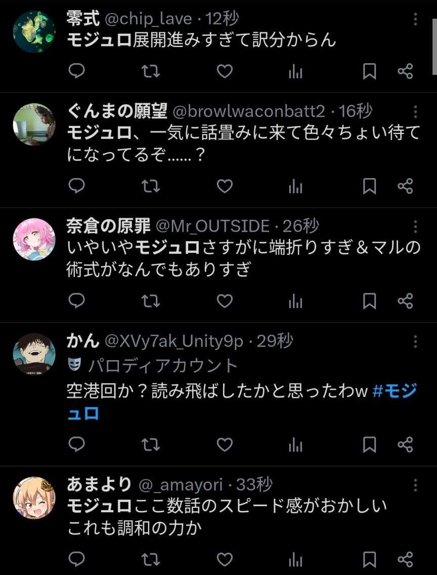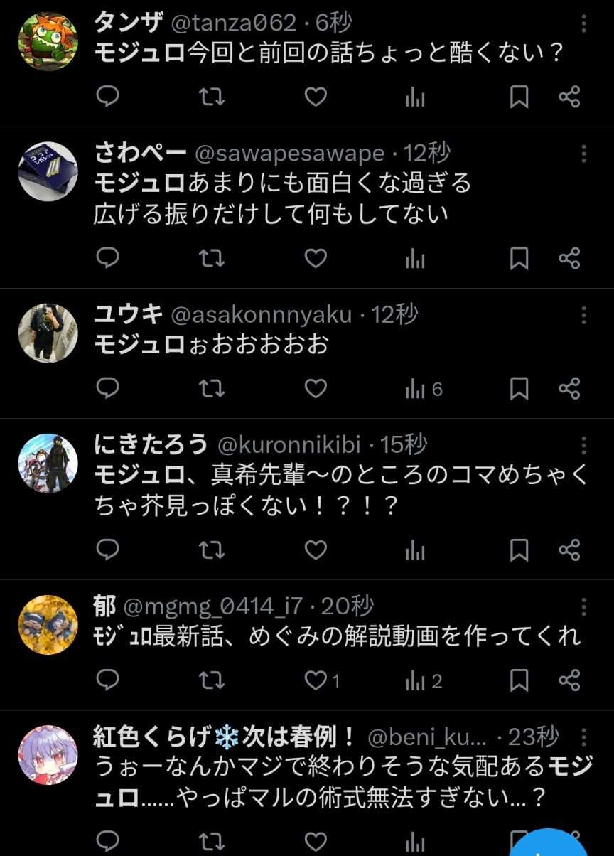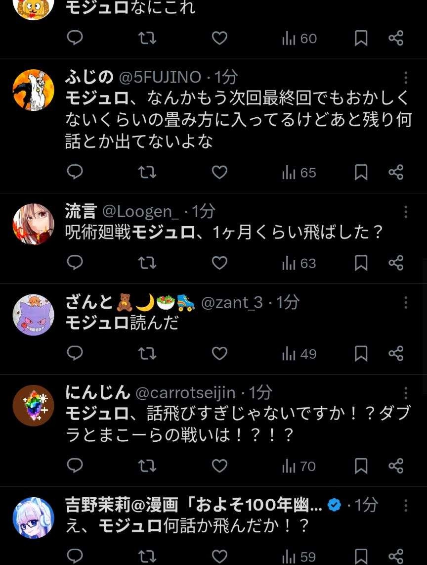 - ダブラや虎杖出てくると盛り上がってマルが何かすると盛り下がる