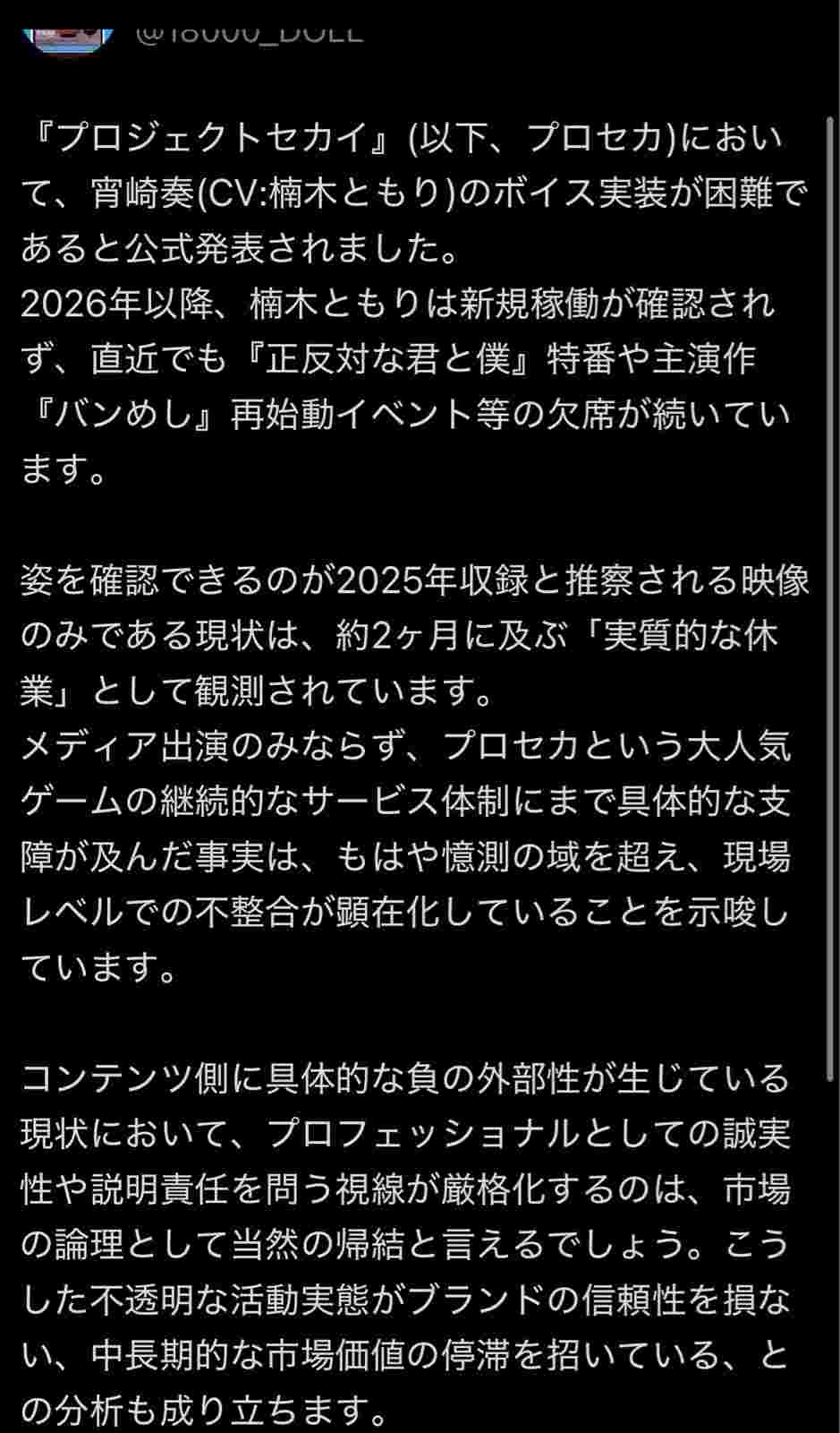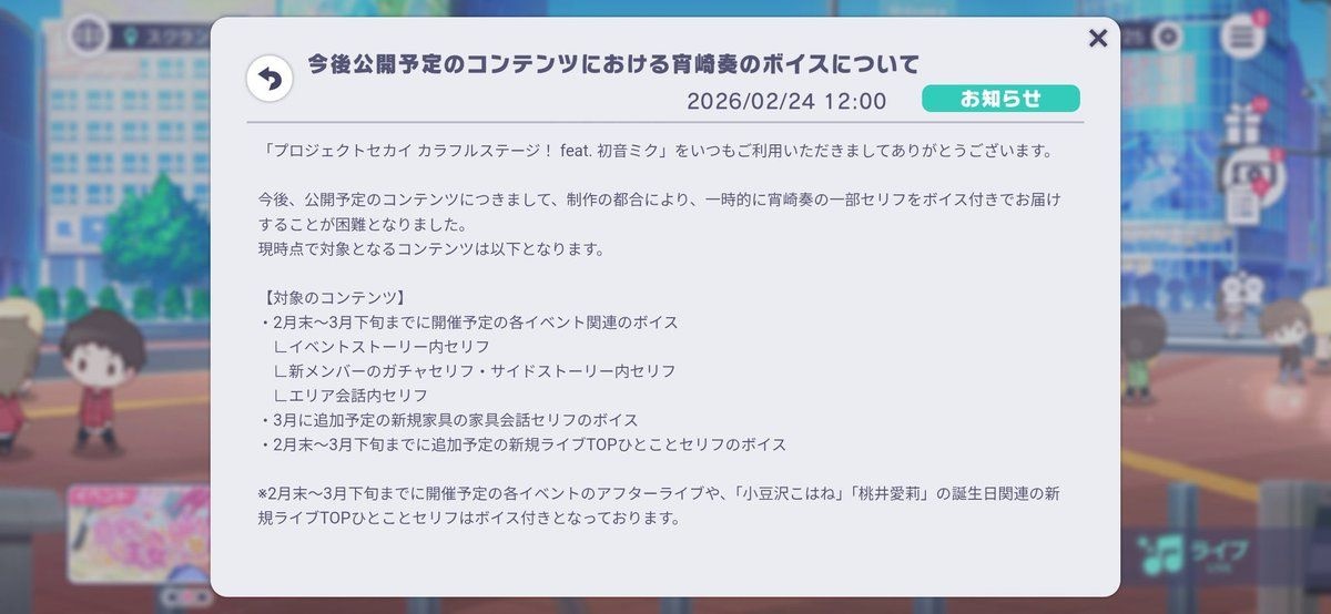 声優の楠木ともり、プロセカにおいて新規ボイス実装が困難なことが発表される