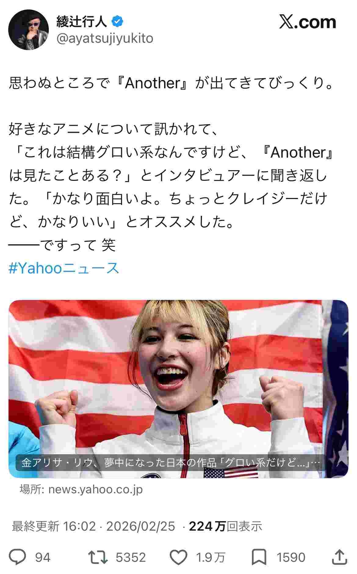 アリサ・リウちゃん「好きなアニメはAnother」←エッヂ民よりアニメに詳しいだろ…
