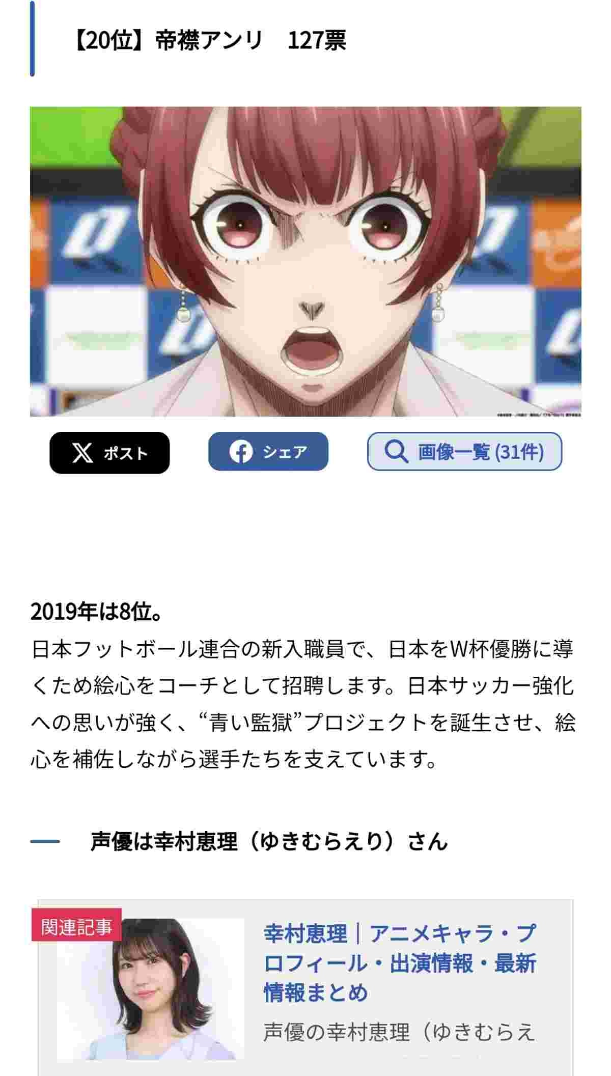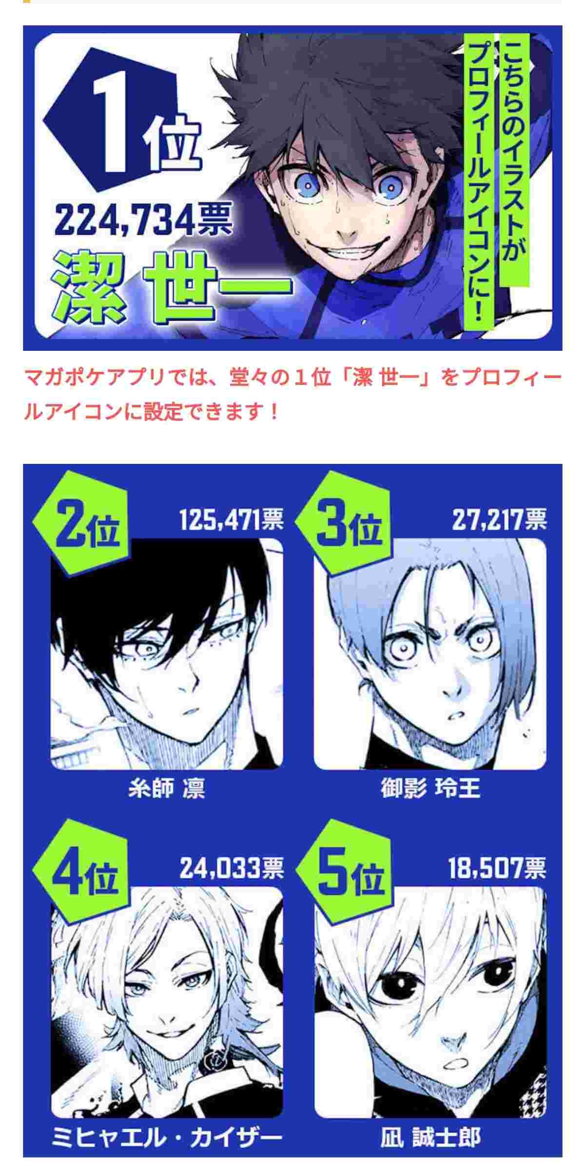 マンガワンのブルーロック公式人気投票、メインヒロインがまさかの10位圏外にwww