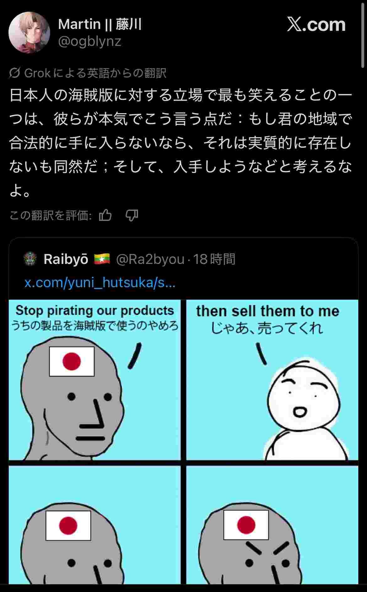 - 見たけど外国人も海賊版肯定してるの一部だけやん