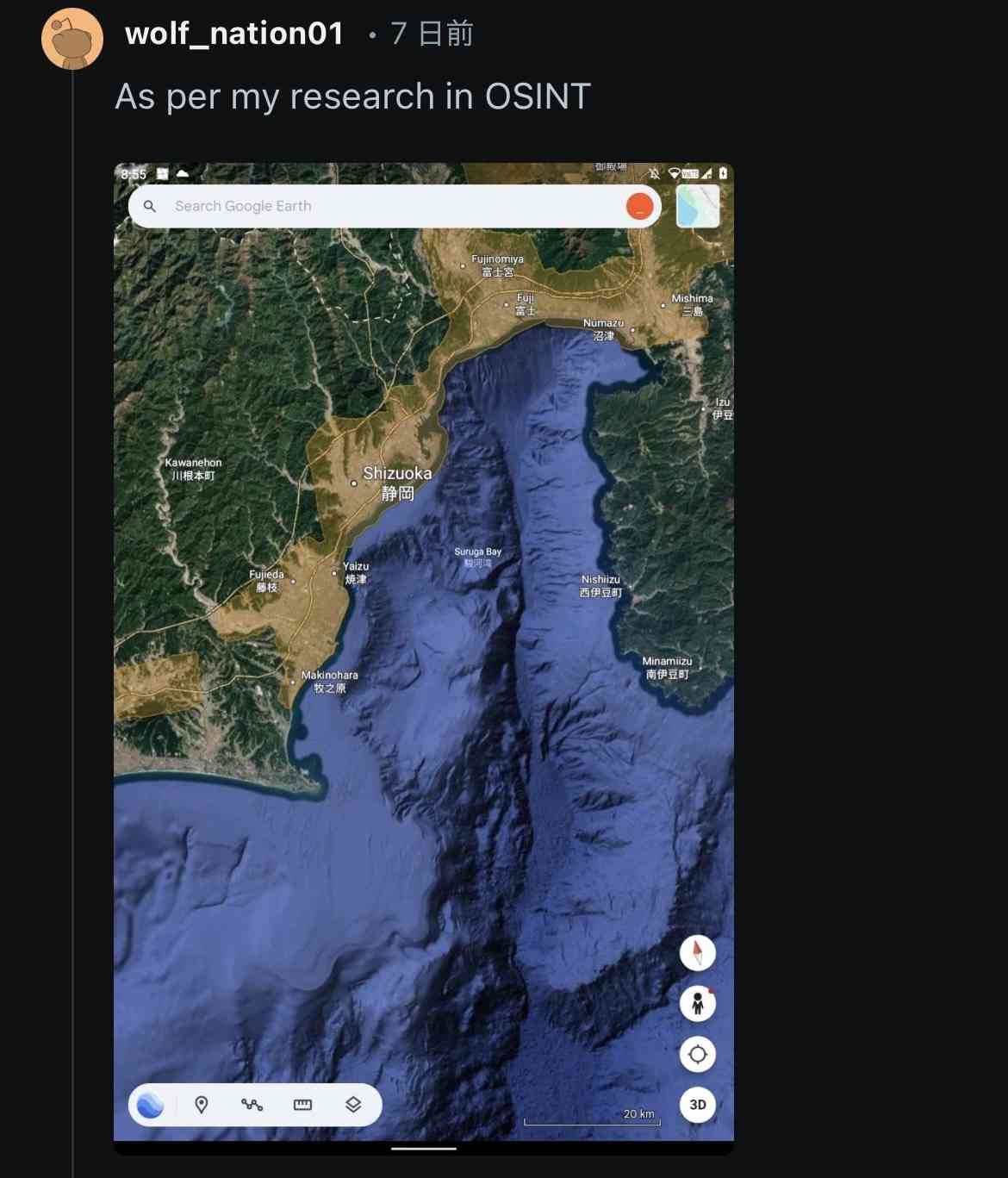 - もう既に駿河湾にあるとまで見当つけてる模様