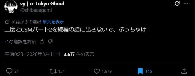 途中までは面白かったファイアパンチの反省を活かしてチェンソーマンを一部二部に区切ることで一部までは面白いという評価を得ることに成功したな