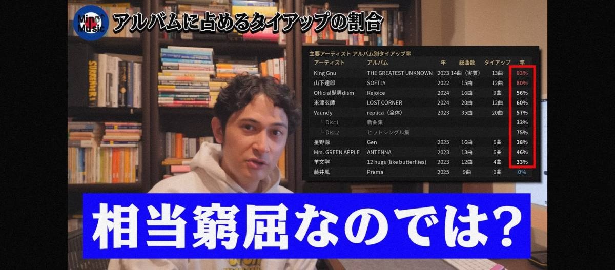 00年代~10年代ではバンプや米津をはじめとして元から作者の表現したい地平があり、タイアップ先の作品が持つテーマ性と一番共鳴して相乗効果を生み出すポイントを探る手法が主流だったが、今では楽曲に対してファン側が「答え合わせ」をしている状態 - 2 : 2026/03/15(日) 09:06:42.581 ID:U01t0dVLV