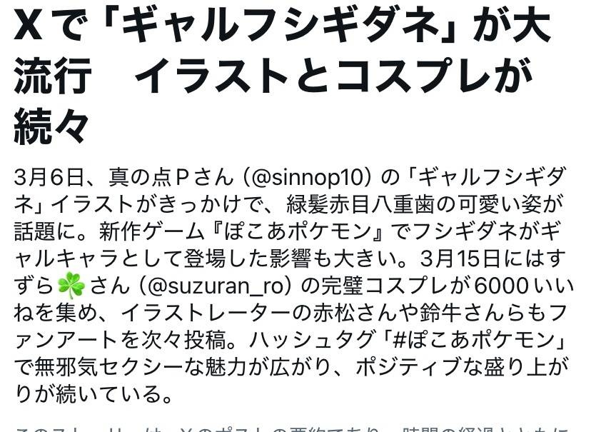 Xでギャルフシギダネの大バズり、イラストとコスプレが続々