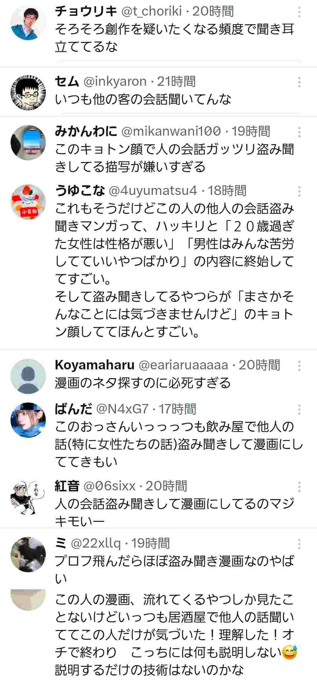 漫画家さん、飲み屋で聞き耳しまくってて叩かれる