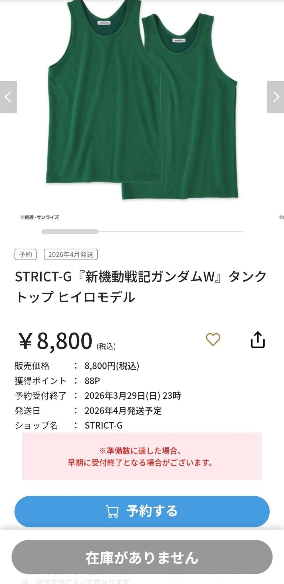 ガンダムWの『ヒイロのタンクトップ』売り切れwww