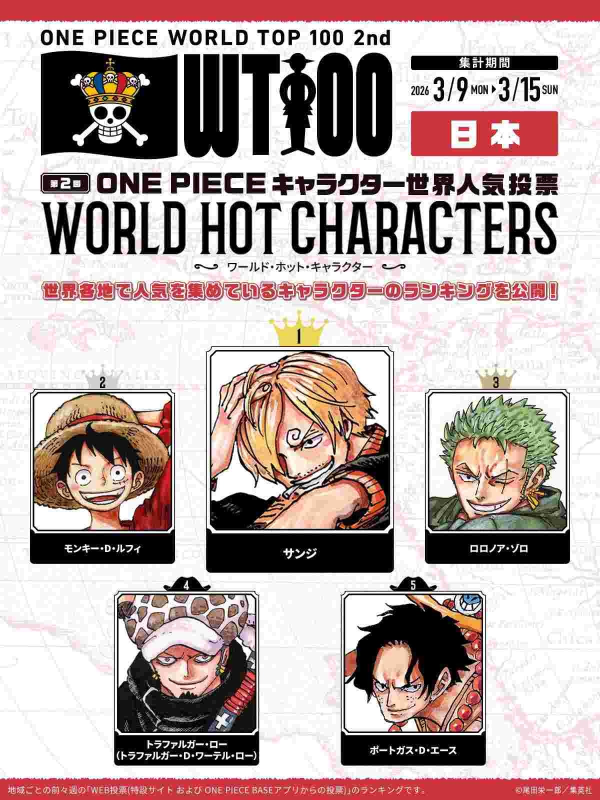 ワンピースの人気投票、サンジが一位になるwww
