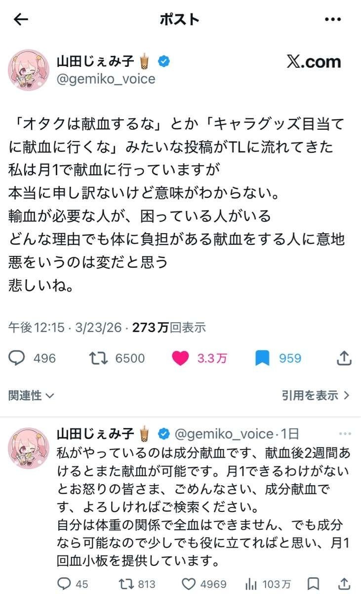 - もう献血報告をしない声優を信じれない