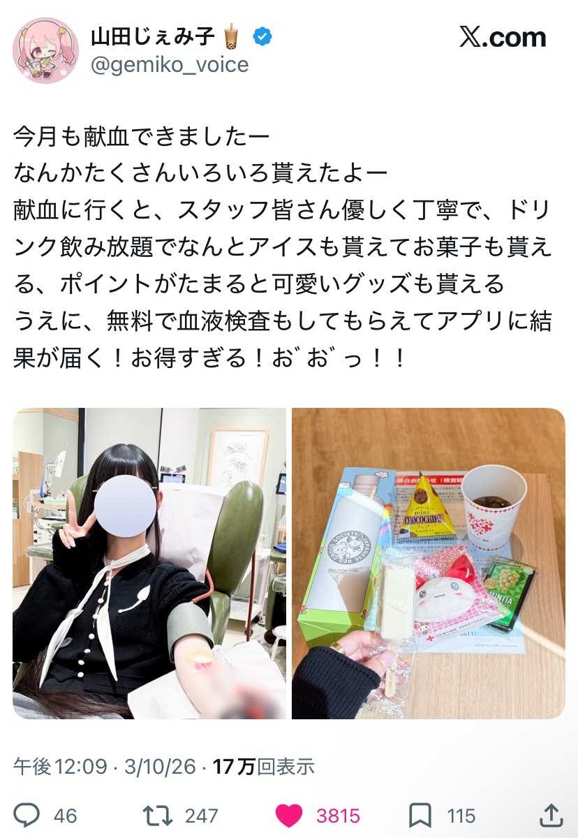 - 今どき献血してない声優とかいるんか
