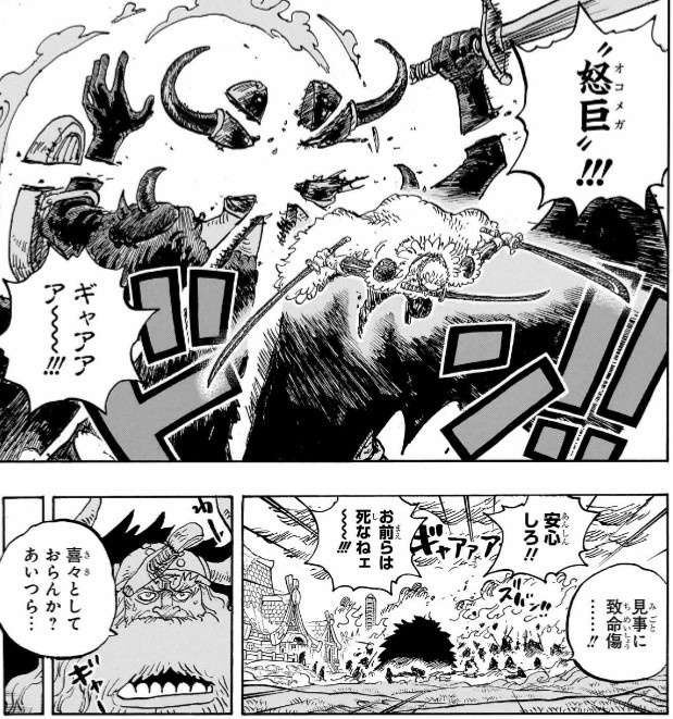 【画像】ロロノア・ゾロの新技「怒巨(オコメガ)」、完全に相手を八つ裂きにしてしまうwww