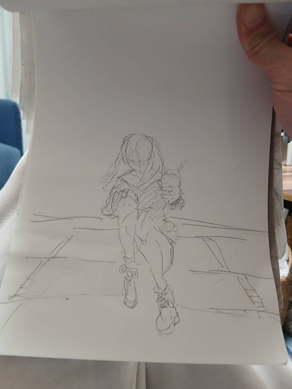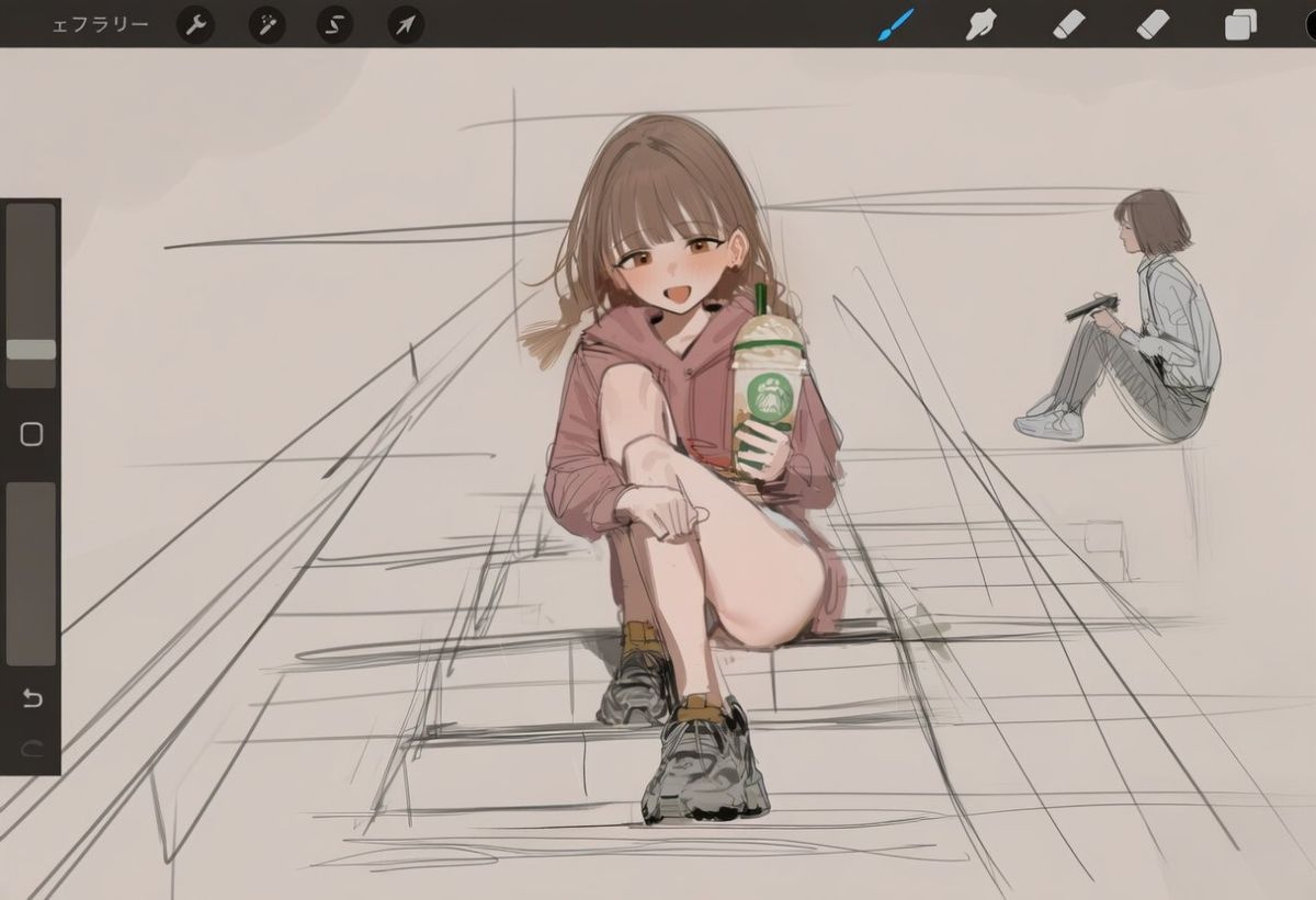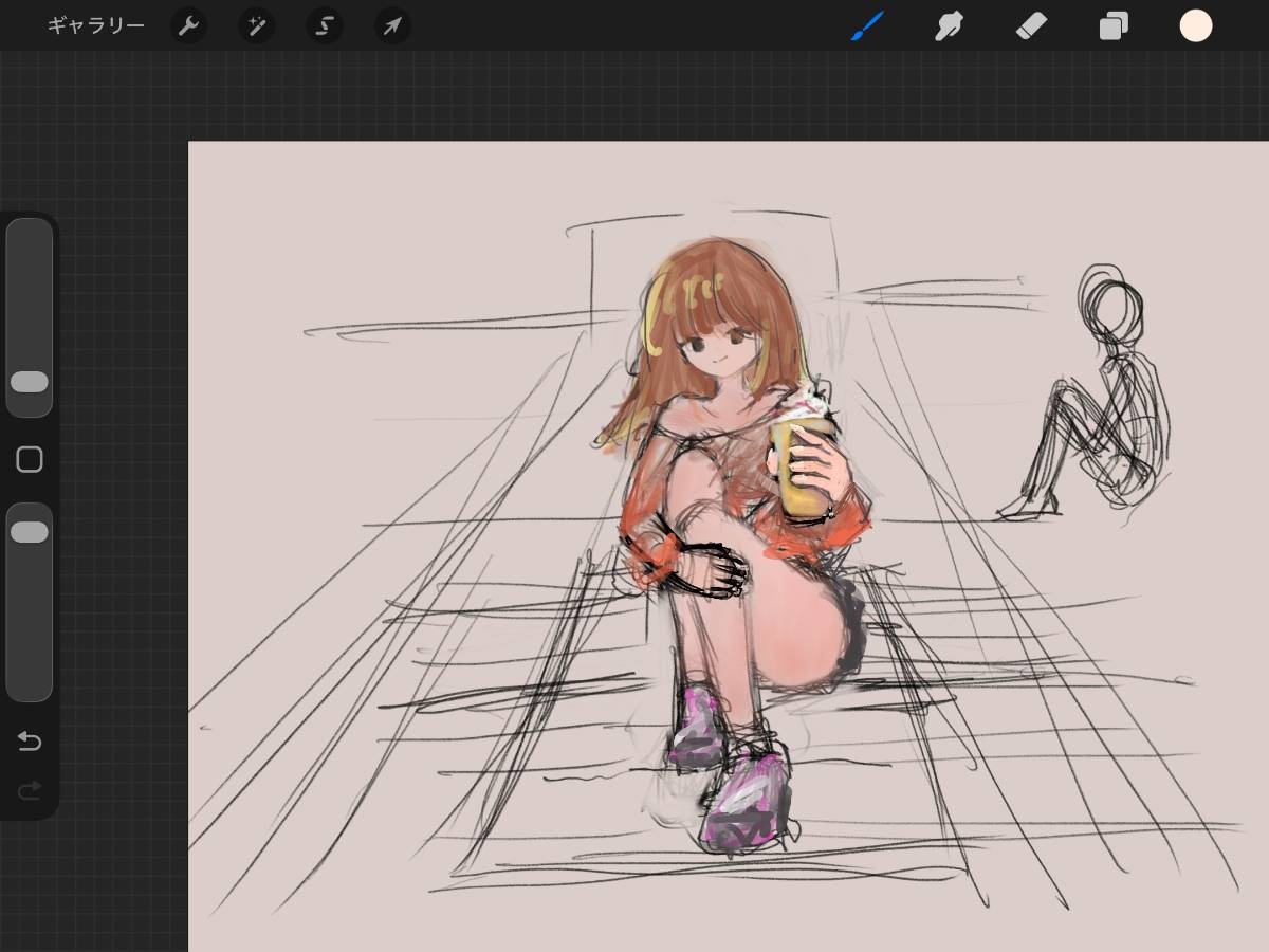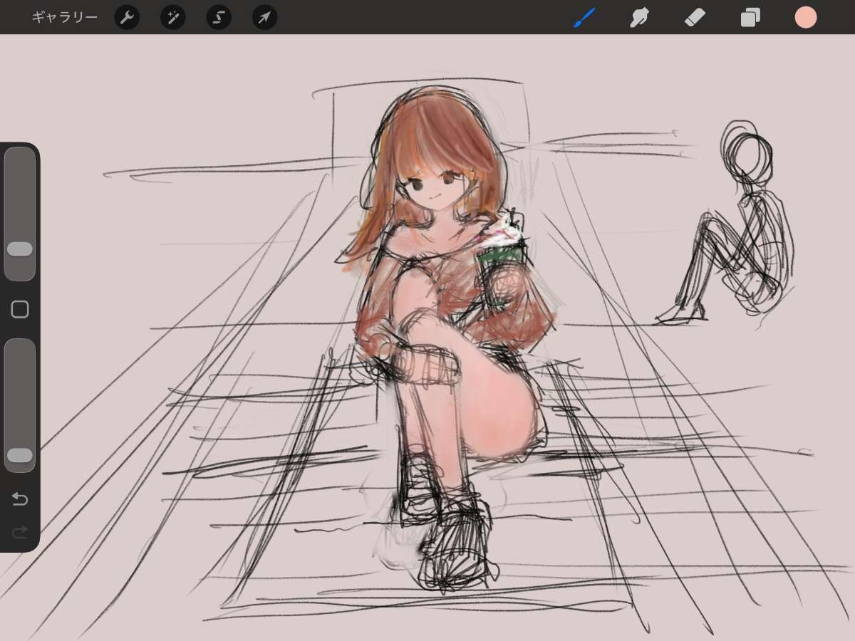 床に座ってるのを描きたかったんやが、そっちのほうが自然な気がしてきた