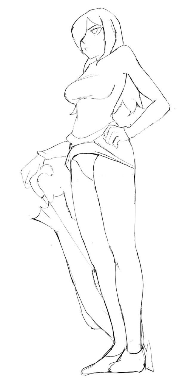 - 書く前に自分でそのポーズして大雑把でええから位置関係確認するとええで