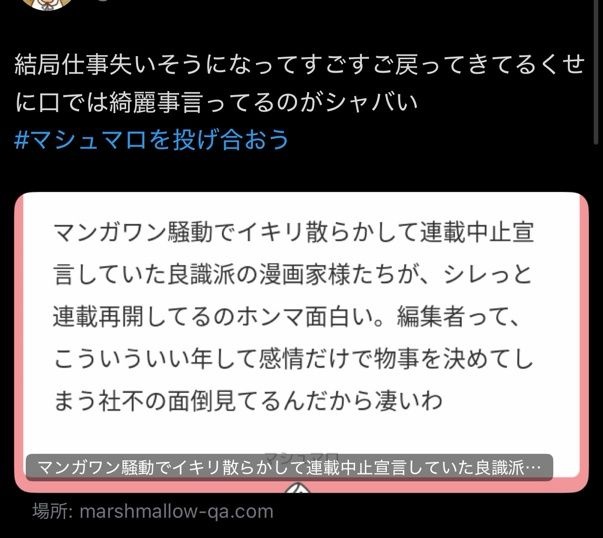 - 漫画家て連載待ちのやついくらでもいるし簡単に連載取れんからな今回便乗したやつは後先考えなさすぎやで