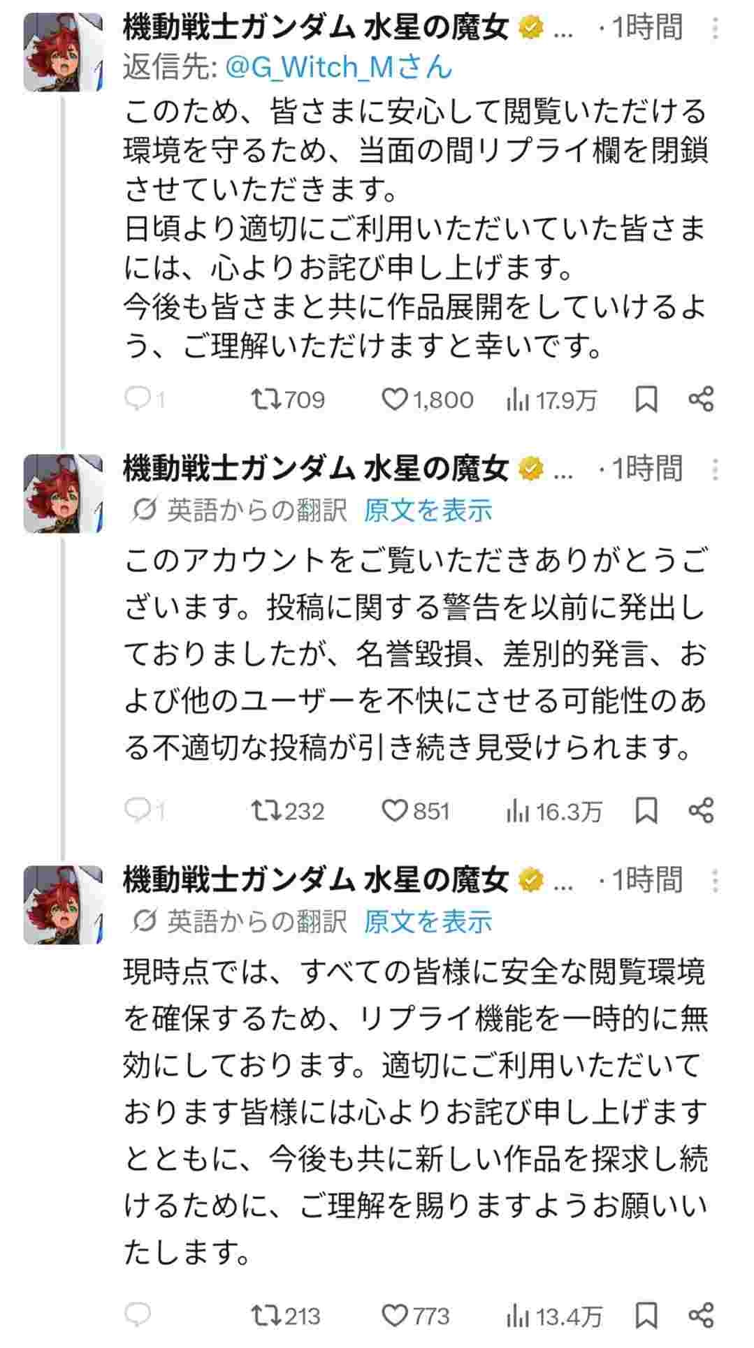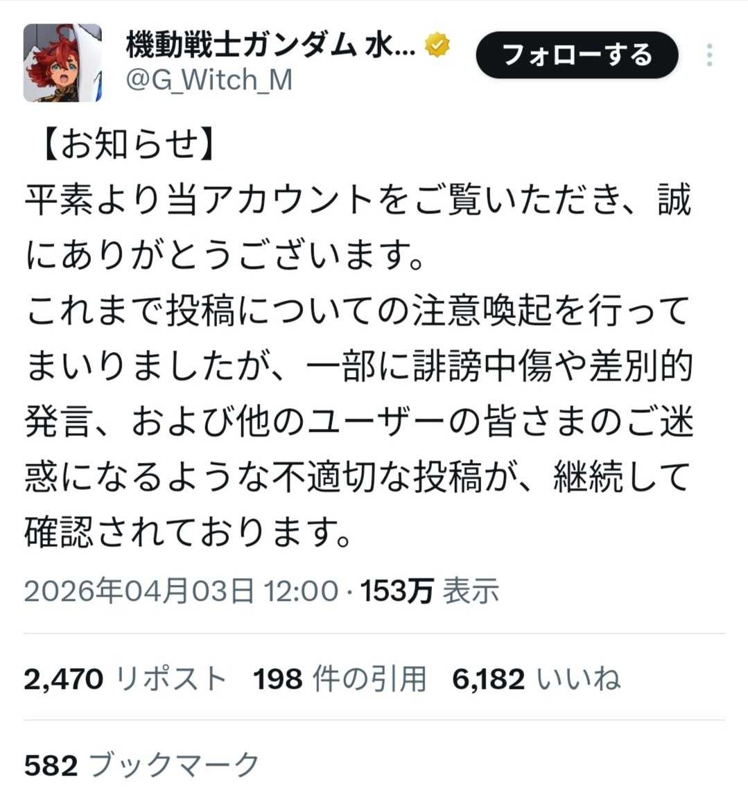 機動戦士ガンダム 水星の魔女公式X、アンチにブチ切れ長文声明www