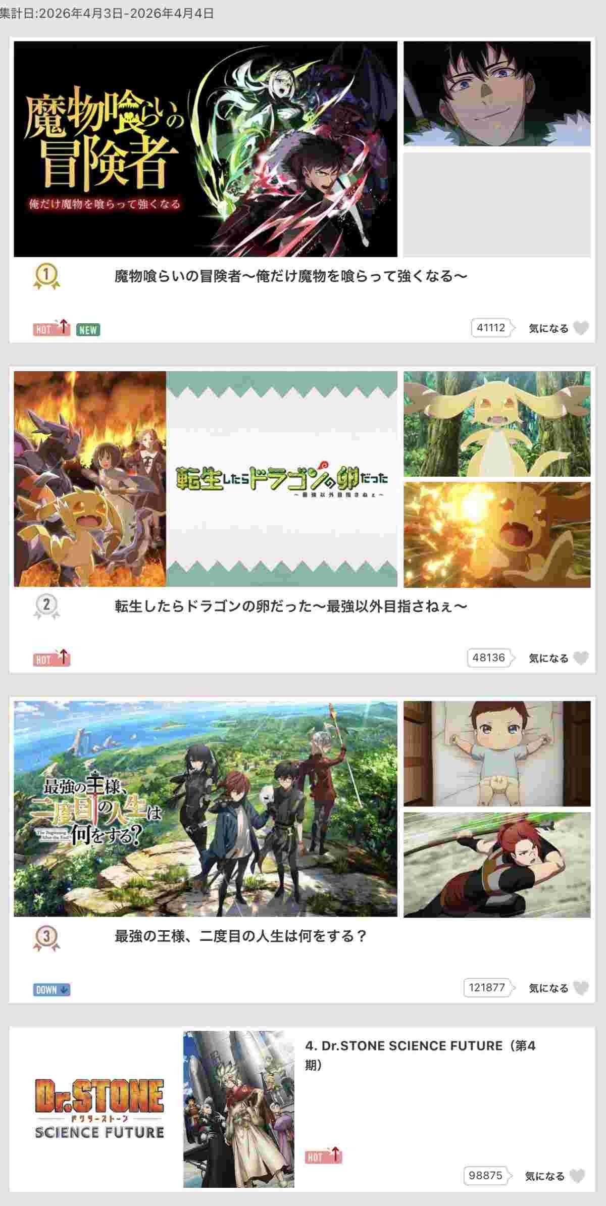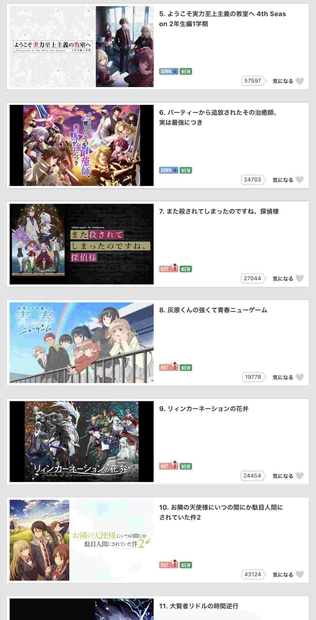 リゼロとか転スライスとかウィストリアとかは前シーズンから見なくなってる