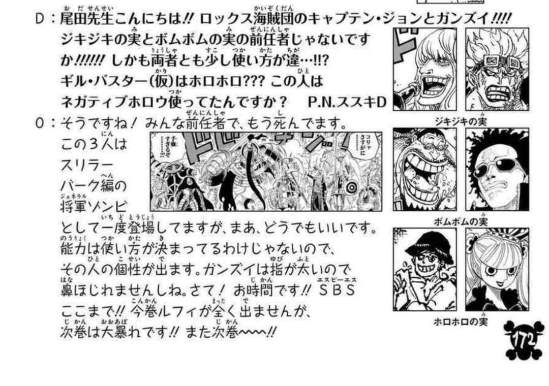 尾田くん漫画描く能力落ちてるから質問コーナーで回答でいいんじゃね