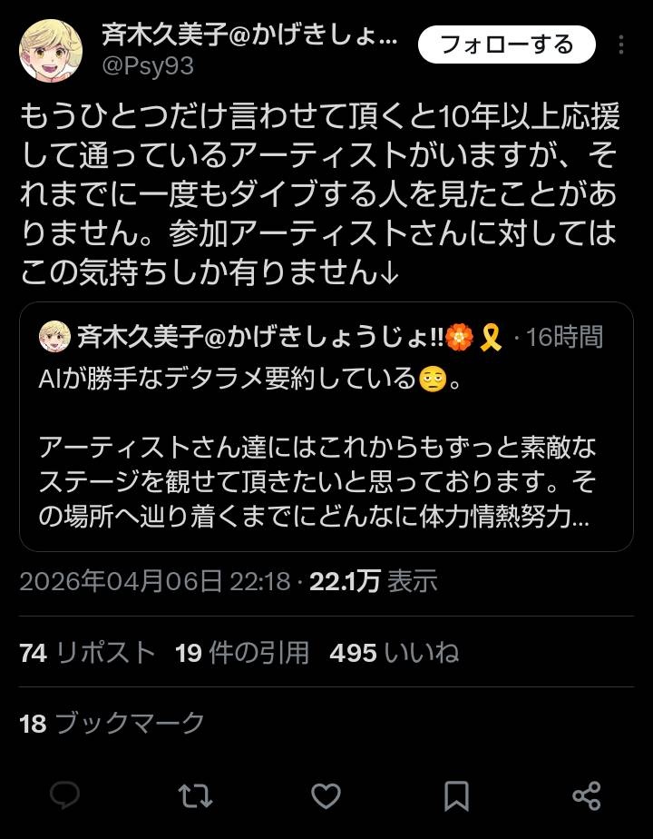 声優ライブの光害と一緒 - 132 : 2026/04/07(火) 12:13:32.097 ID:1054sUGuX