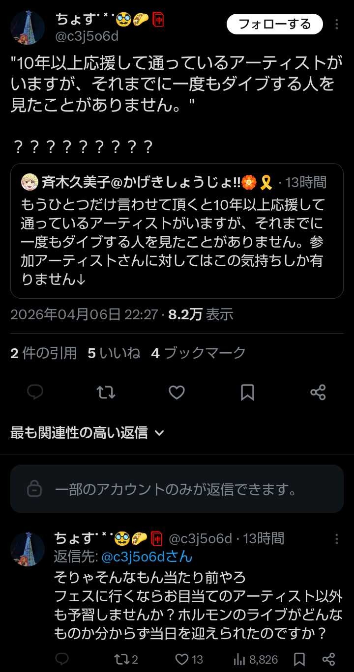 フェスに行くやつはアホ - 29 : 2026/04/07(火) 11:58:38.642 ID:32iht/xJy