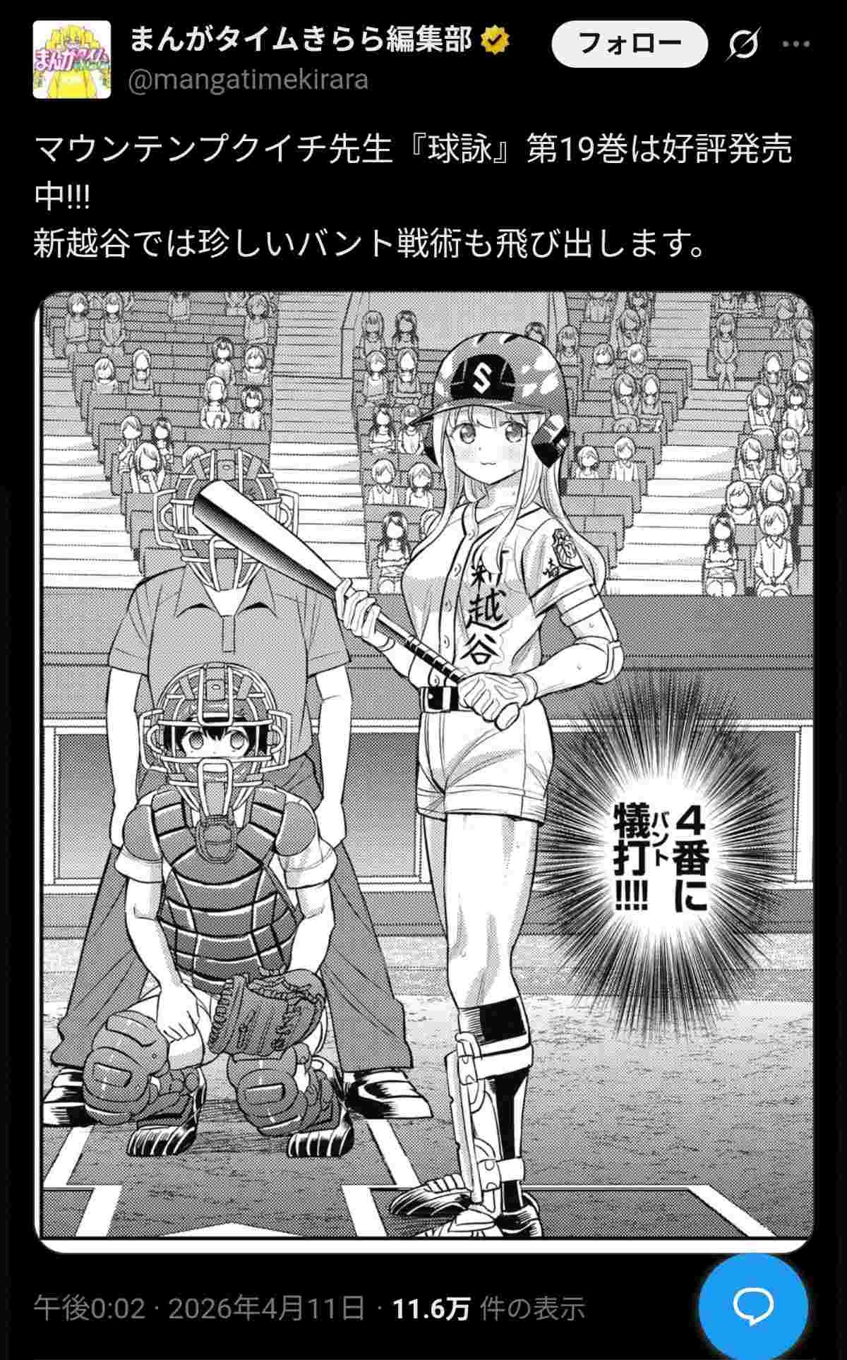 野球漫画さん、4番バントというあり得ない展開をして炎上www