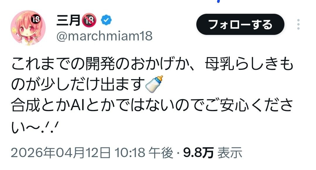 ひなこのーと作者さん、開発しすぎて母乳が出るようになる。
