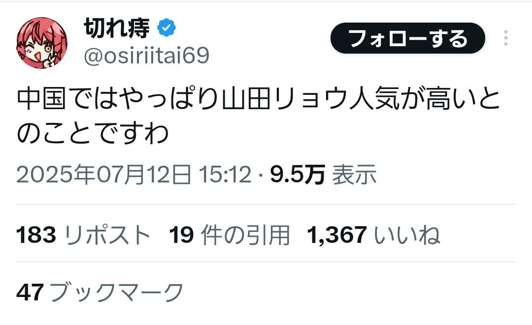 山田は中国で人気らしい