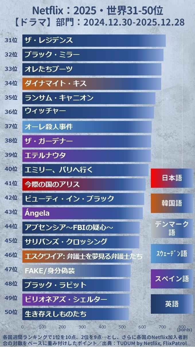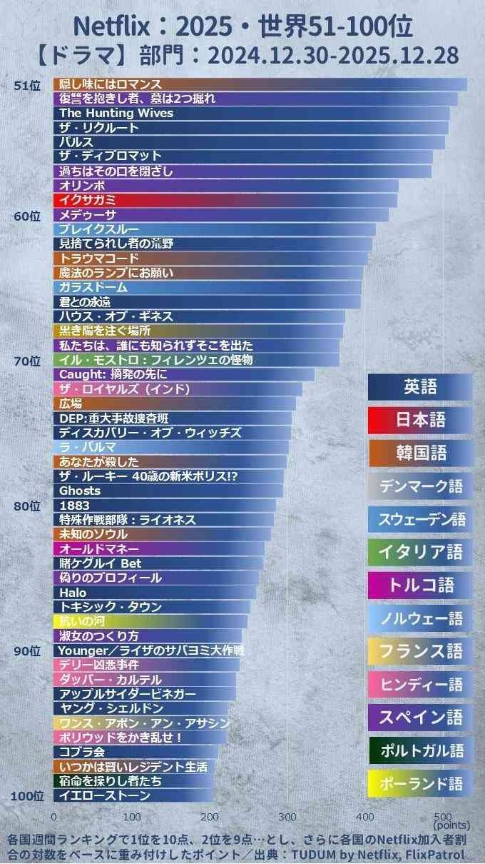 ソース元のネトフリはそうやけど、これはこいつが作ったランキングやろ? - 23 : 2026/04/17(金) 10:45:01.031 ID:cdECH5aIC