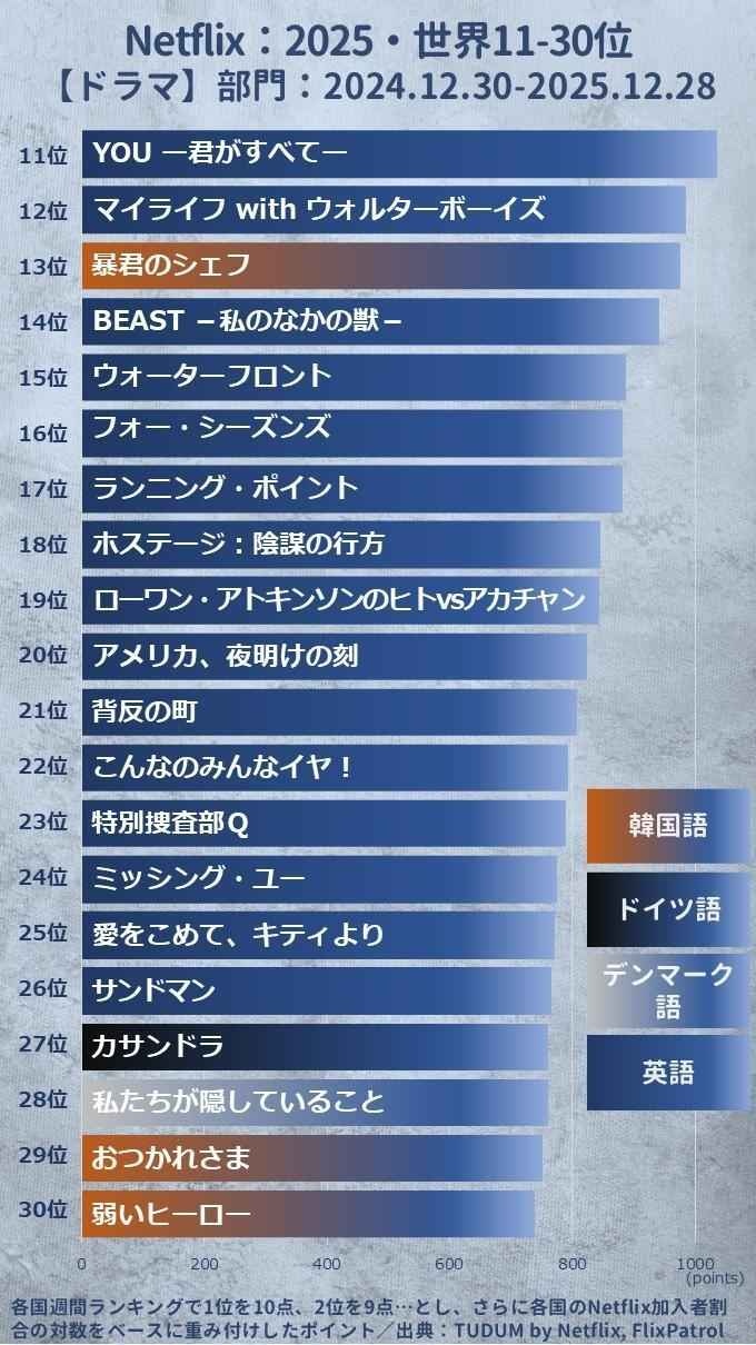 - 2025年:世界のNetflix【ドラマ】(TVアニメ含む)部門ではなにが観られたのか?
