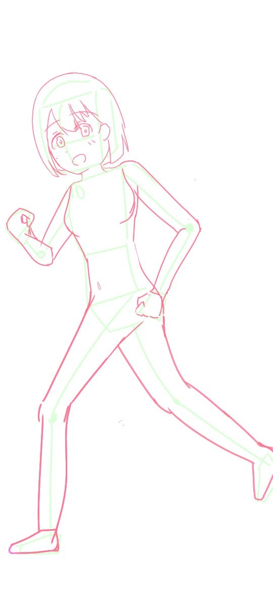 ①いい構図の写真等を見つけ、それを使いアタリをとる(現在使っている素体は𝗶𝗯𝗶𝘀より)②そのアタリを使い、他にもお好みの資料を見てそれ参考にラフを描く(以下実例)