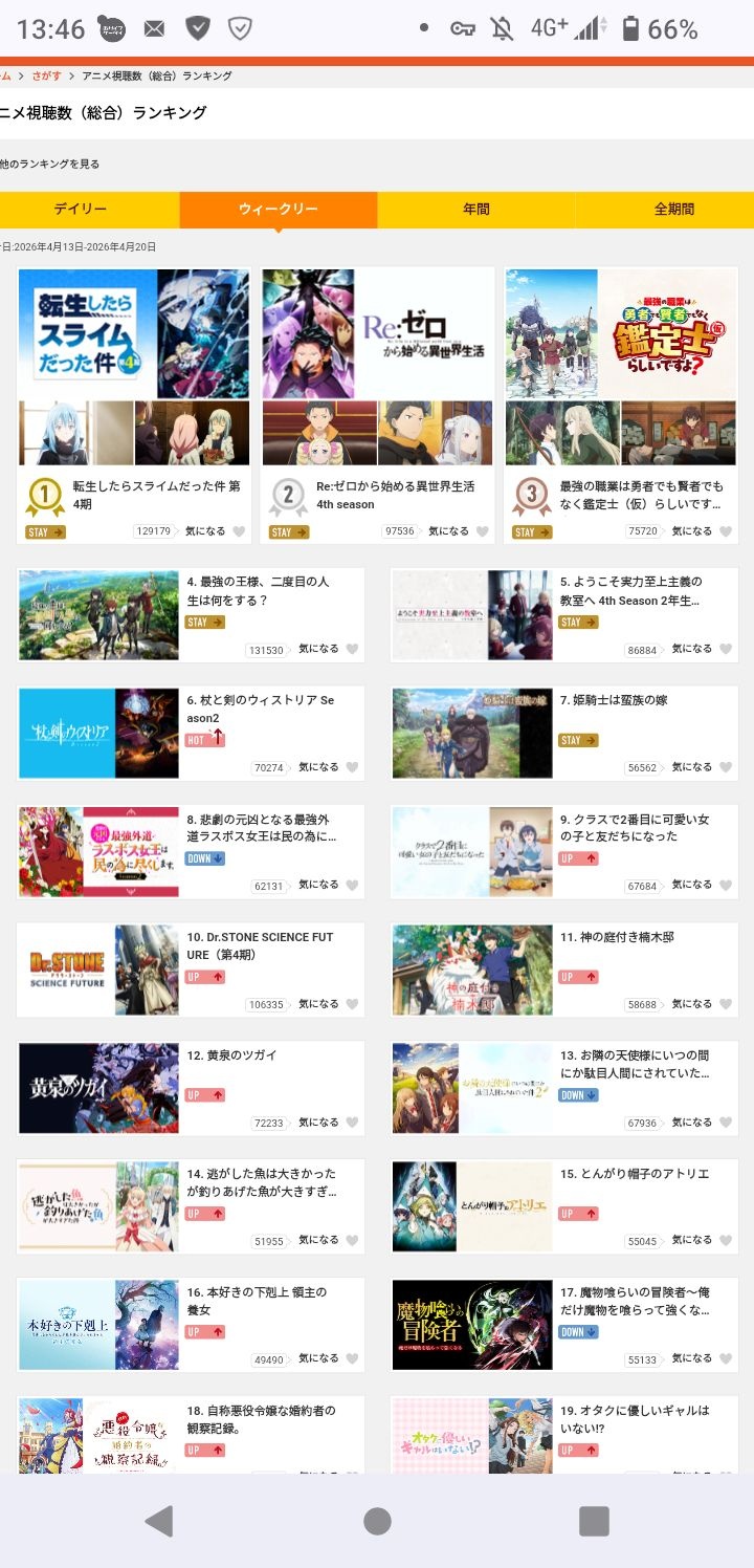 Re:ZERO シーズン4が3週連続でトップを維持し、その後ろにClassroom of the Elite IVとWitch Hat Atelierが続きます。