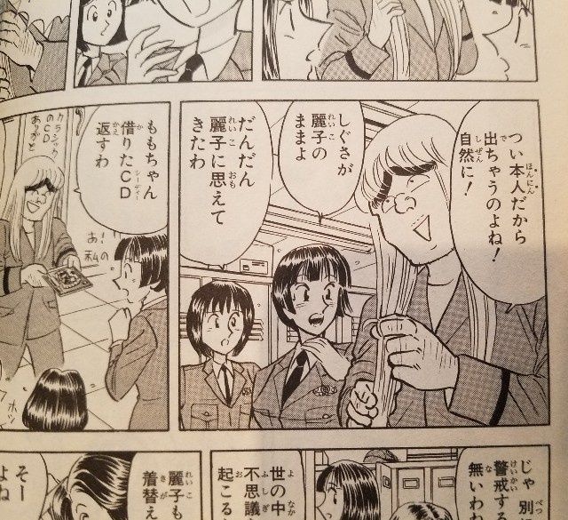 麗子が女優の藤原糊香と友達だということを知って大興奮する両さん