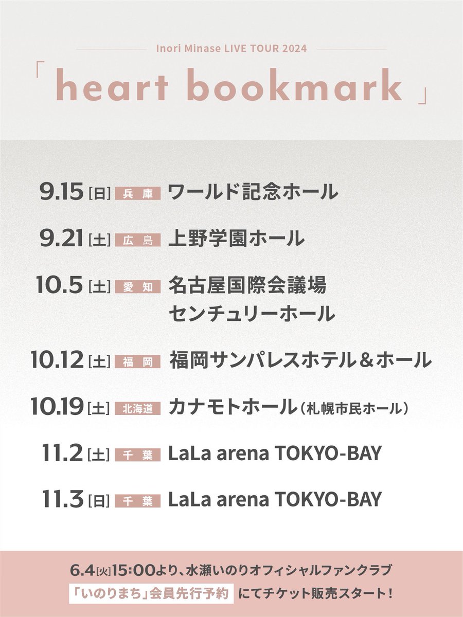 「Inori Minase LIVE TOUR 2024 heart bookmark」
