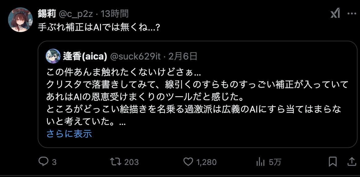 絵師「手ぶれ補正はAIじゃ無いんだあああああああああ!!!」←9万いいね