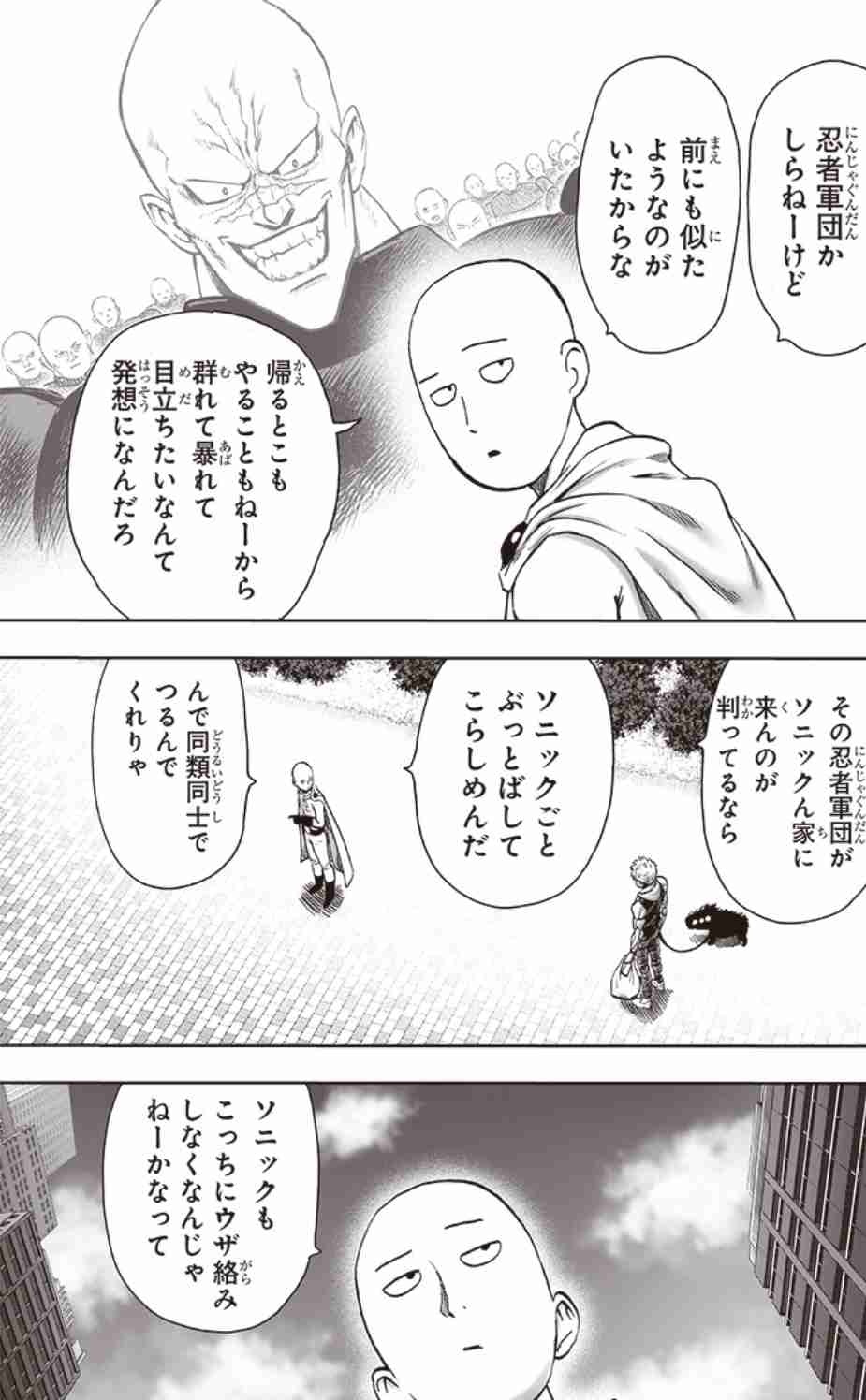 - サイタマとかソニックの事なんかどうでもいいと思ってるし昔の雑魚敵のことなんか覚えてるわけねーだろクソ作者