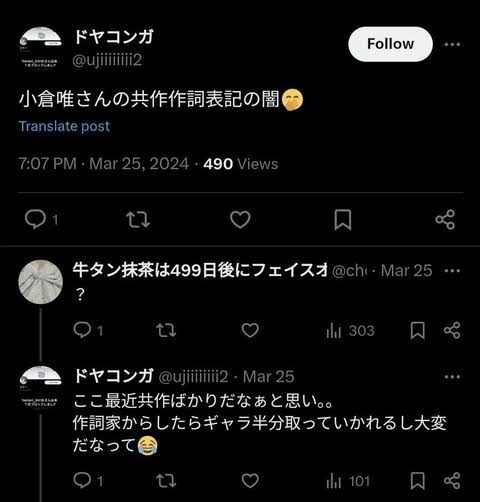 ドヤコンガさんに共作作詞が叩かれた影響なのかはわからないけど今回は小倉唯単独作詞な模様