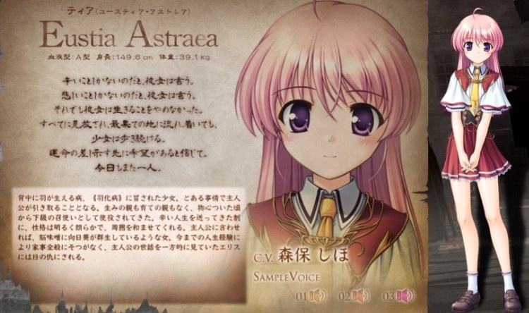 『穢翼のユースティア』ティア役の森保しほ様は、事務所様の都合により降板となりました。そのため以降は麦畑穂香様へ変更となります。