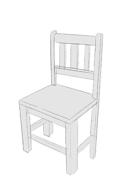 作品描くときに椅子に座ってる絵を描きたいとか背景に椅子描きたいってなったときに調べたり講座みて練習ってのがええと思う