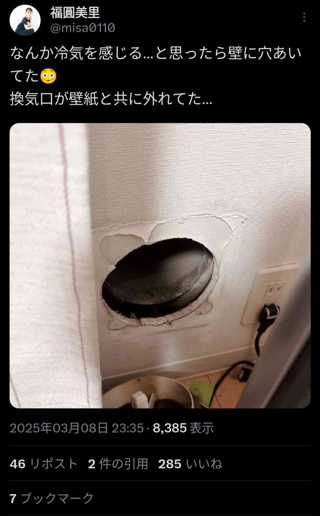 - 「換気口外れた… せや!Twitterに写真上げちゃお!」
