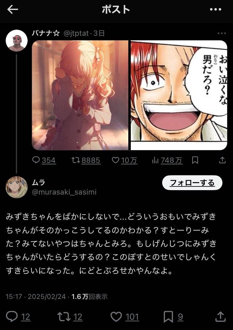 赤髪のシャンクス、プロセカ女子に嫌われまくってしまう←10万いいねwww