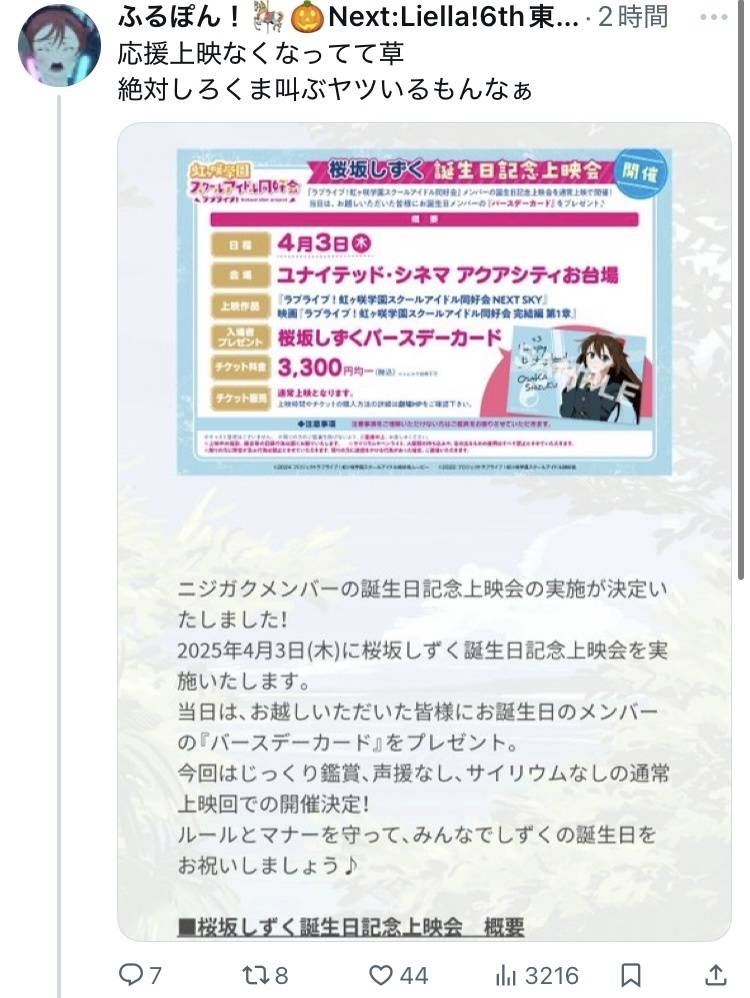 ラブライブ応援上映、CV前田佳織里バースデー回だけ声出し禁止になってしまうwww