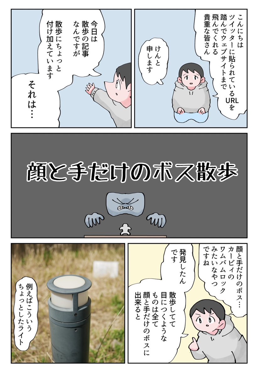 散歩して街で見かけたものを顔と手だけのボスにしたいと思います。では…行ってきます!!!