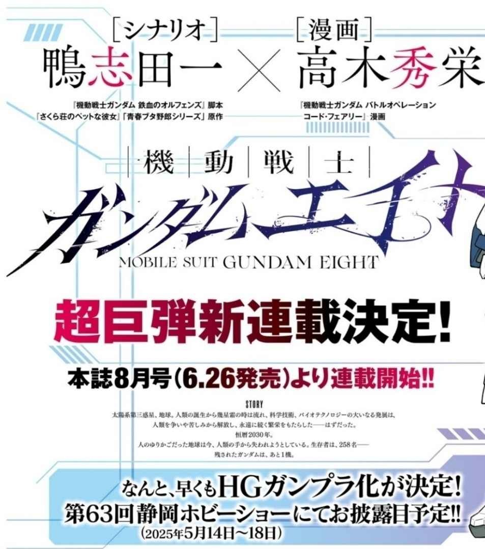- マンガ誌「月刊ガンダムエース」(KADOKAWA)で「機動戦士ガンダムエイト」が連載されることが分かった。