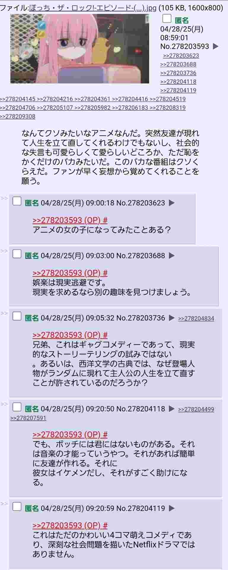 4chanのアニメスレッドの住民の空気は実況民ほぼまんまやからな - 43 : 2025/04/28(月) 14:22:00.035 ID:5rJfvVF/S