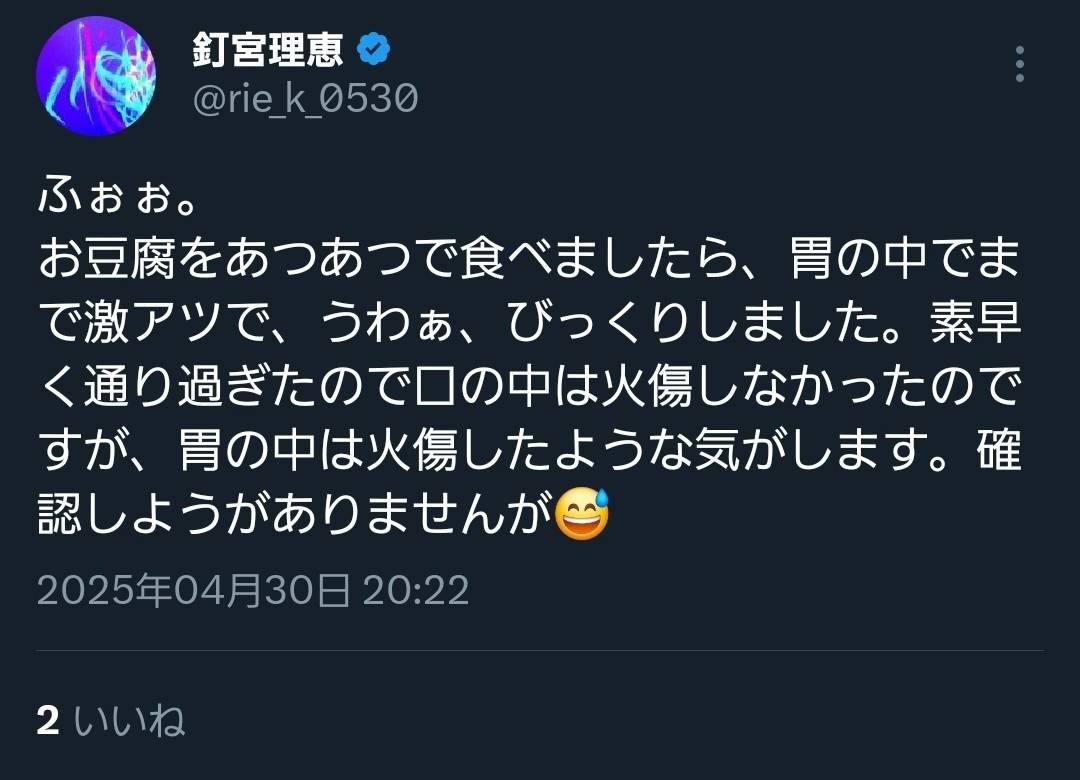 - 熱々の豆腐をふーふーしてるときの声を想像するとかわいい