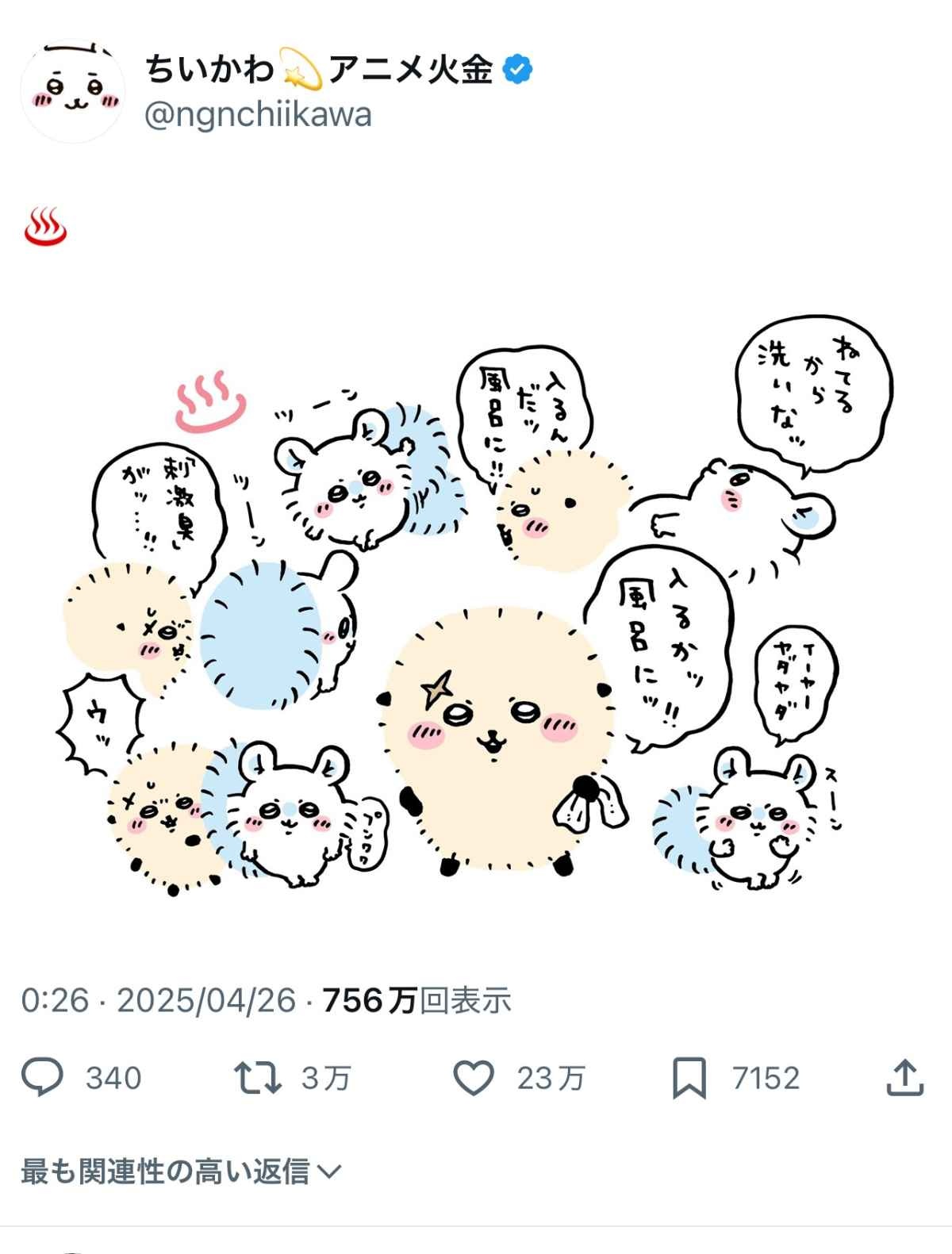 - ちいかわの世界ってオスメスの概念ないから混浴なんか