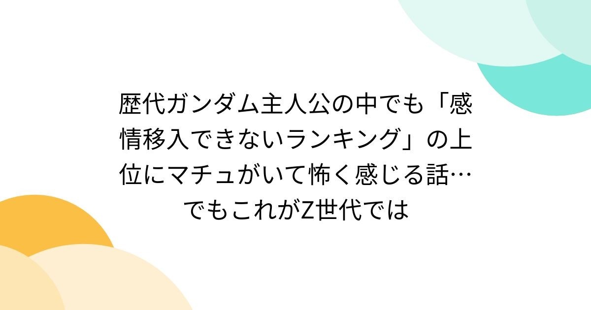 - 歴代ガンダム主人公の中でも「感情移入できないランキング」の上位にマチュがいて怖く感じる話…でもこれがZ世代では – Togetter [トゥギャッター]