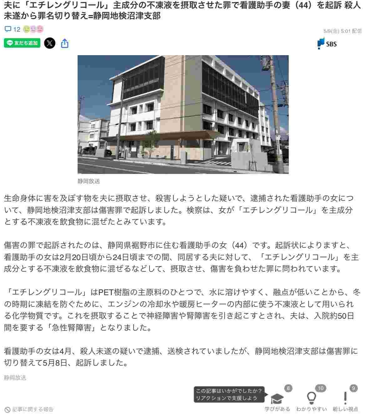 【画像】旦那デスノートでオススメされてる不凍液を夫の食事に混ぜて殺害しようとした奥様、なぜか逮捕される😭